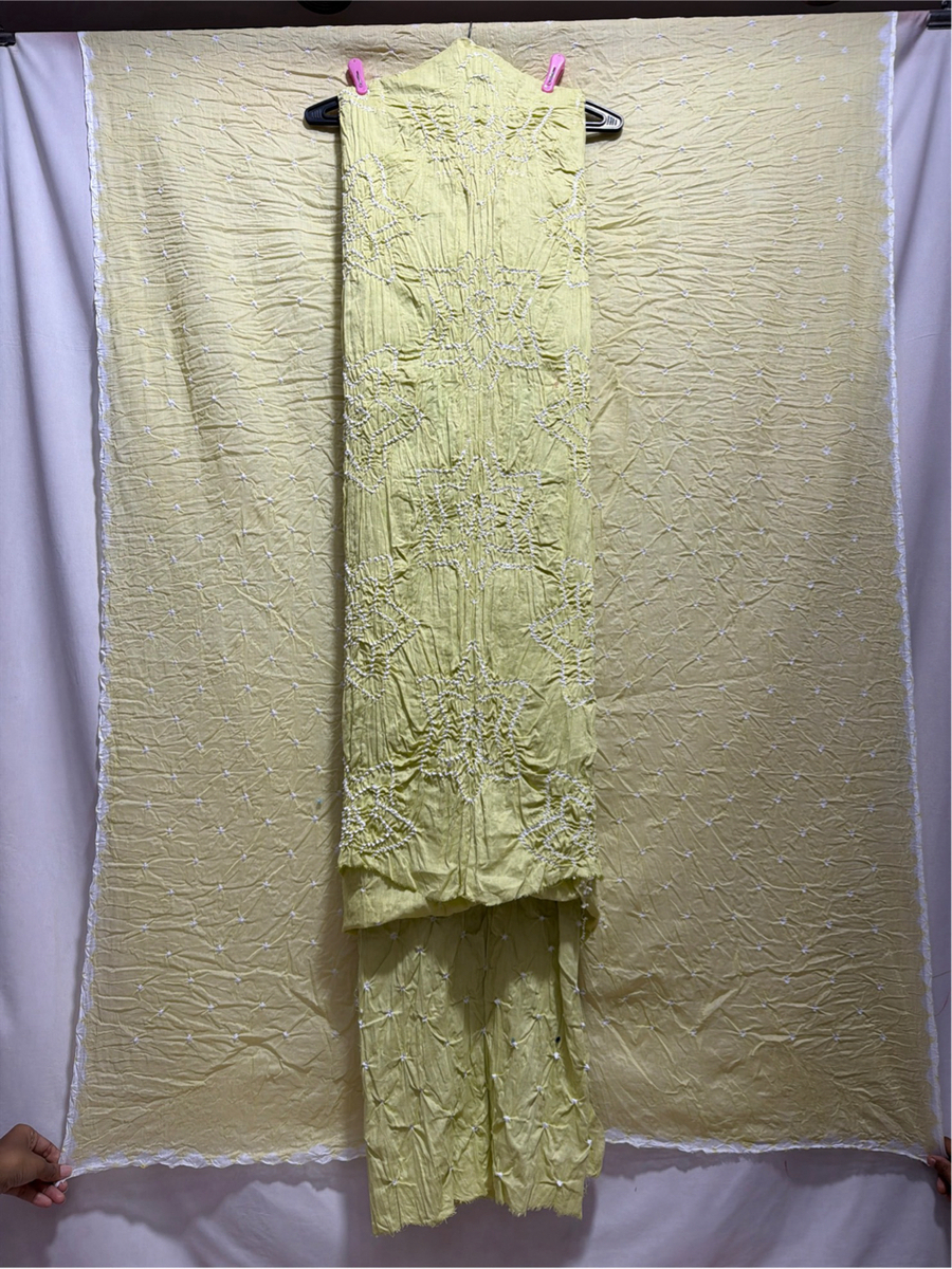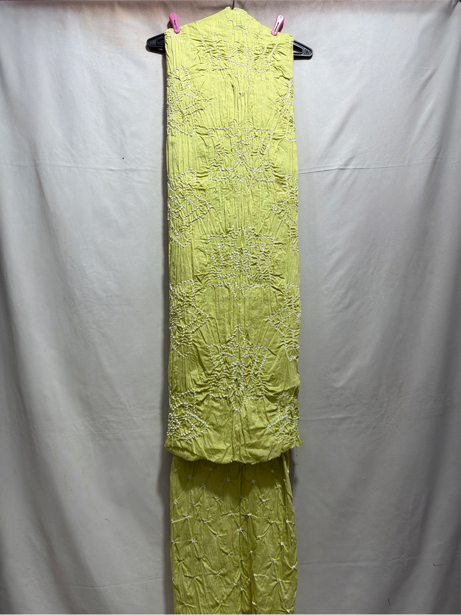 Kala Sanskruti All Over Light Mehndi Color Heavy Cotton Satin Bandhani Dress 2.5 M (Each Piece) Elegant Traditional Wear Dress Material for Women