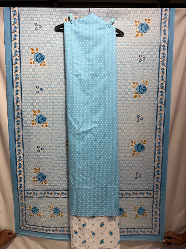 Kala Sanskruti Sky Blue & Whit Color Heavy Cotton Satin Printed Dress 2.5 M (Each Piece) Elegant Traditional Wear Dress Material for Women