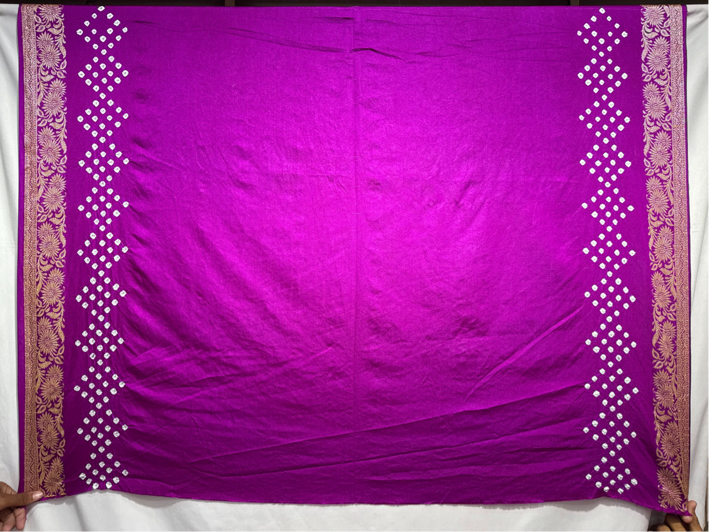- Design & Shade: All Over Rani Pink base enhanced with Hand Made Bandhani, a true example of cultural craftsmanship.