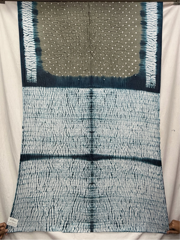Kala Sanskruti Indigo & Grey Color Cotton Bandhani Saree 6.5M with Blouse Piece Elegant Traditional Wear Saree for Women