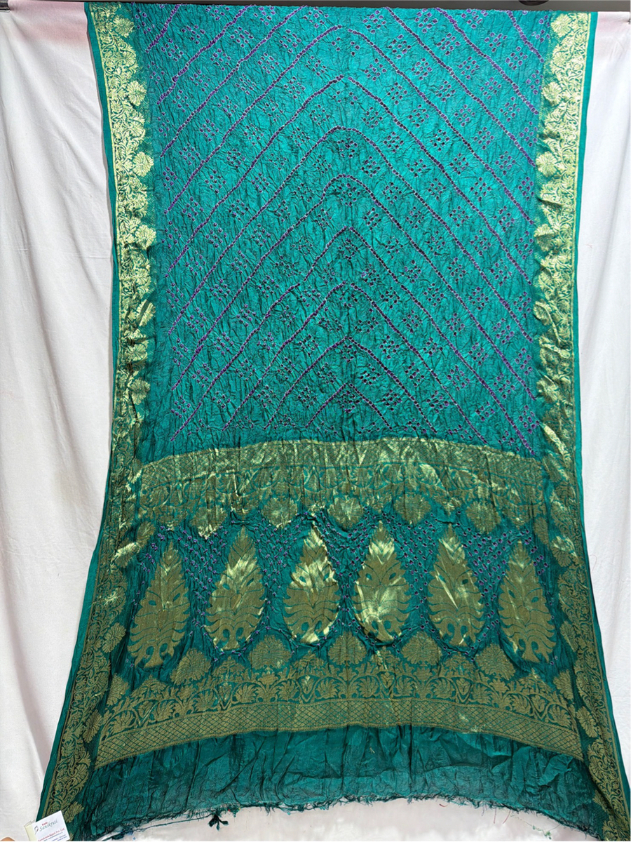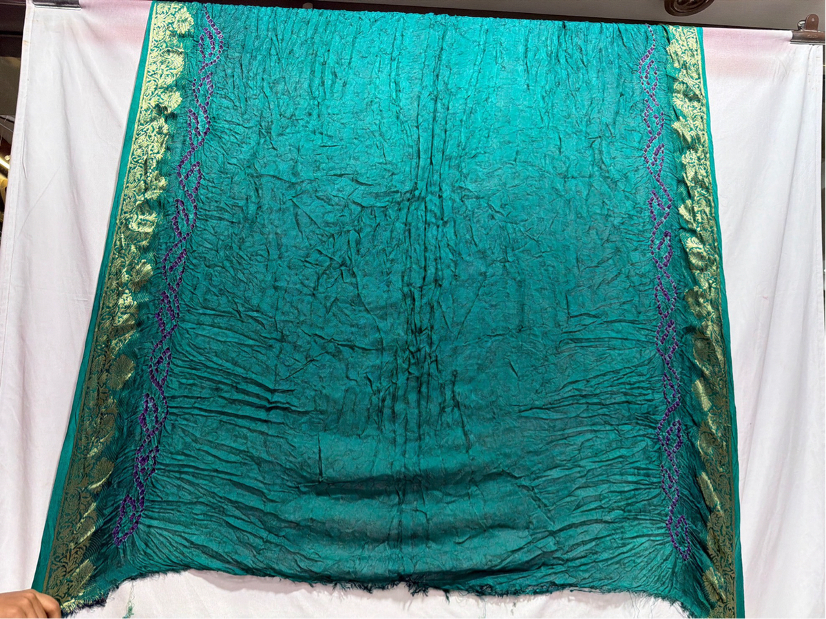 Sanskruti All Over Rama Color Art Silk Bandhani Saree 6.5M with Blouse Piece Elegant Traditional Wear Bridal Unique Saree for Women
