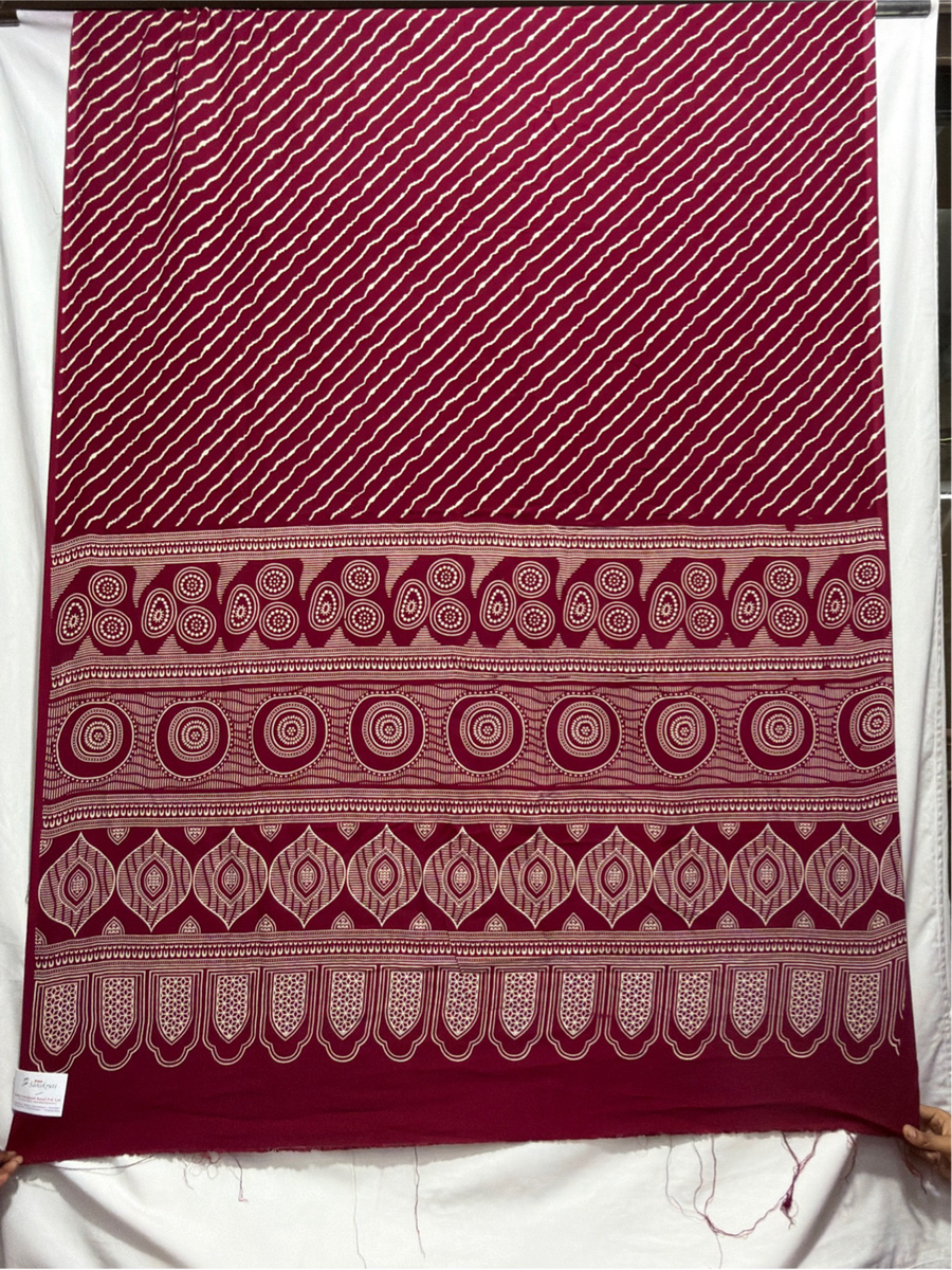 Kala Sanskruti All Over Maroon Color Art Silk Ajarakh Print Saree 6.5M with Blouse Piece Elegant Traditional Wear Bridal Unique Printed Saree for Women