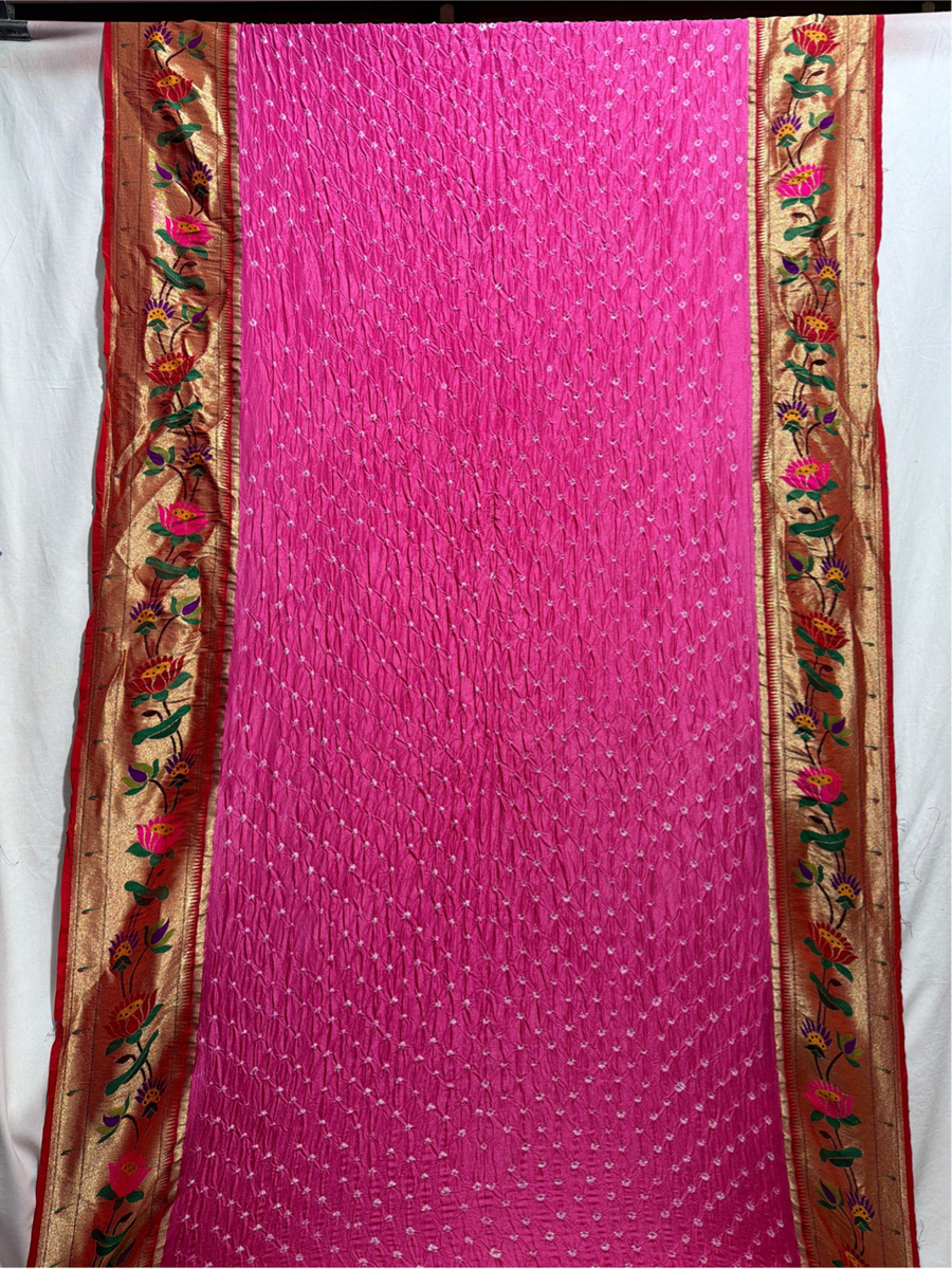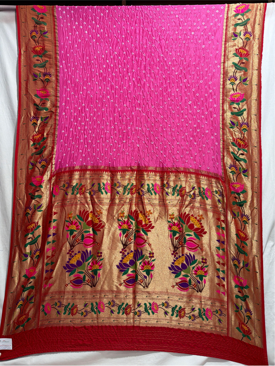 Kala Sanskruti Pink & Red Color Art Silk Bandhani Saree 6.5M with Blouse Piece Elegant Traditional Wear Bridal Unique Saree for Women