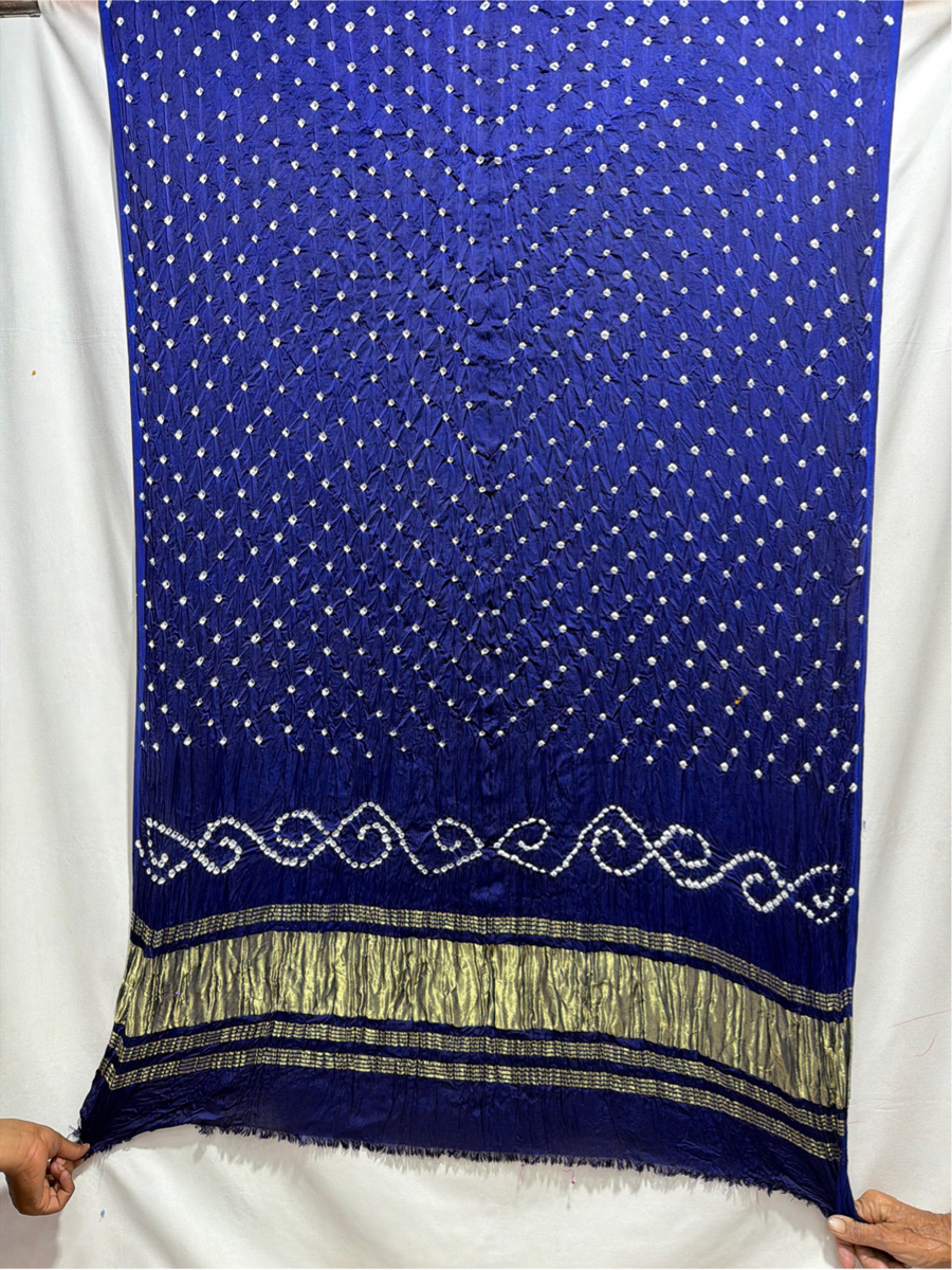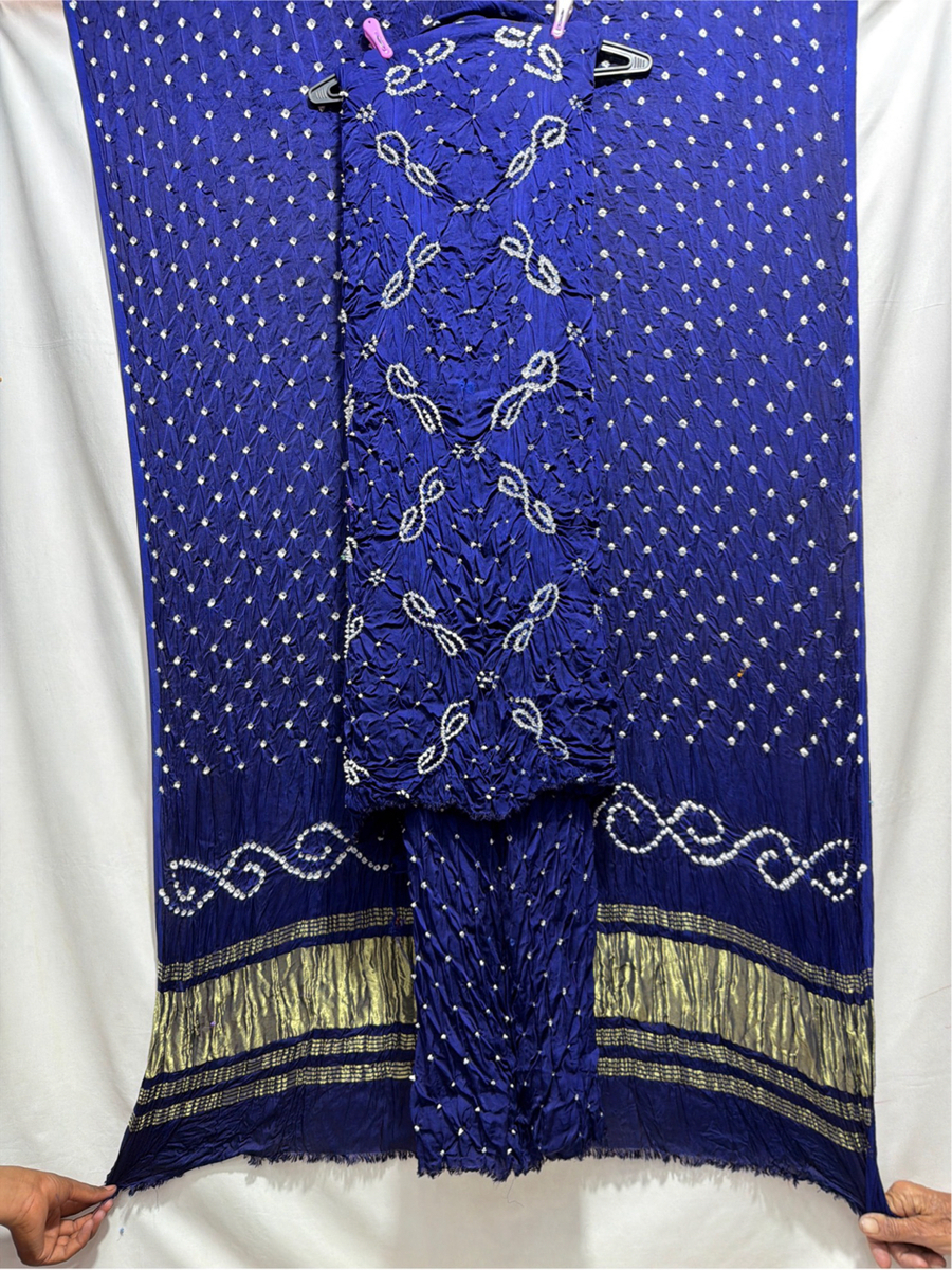 Kala Sanskruti All Over New Blue Color Art Silk Bandhani Dress 2.5 M Each Piece Elegant Traditional Wear Art Silk Dress for Women