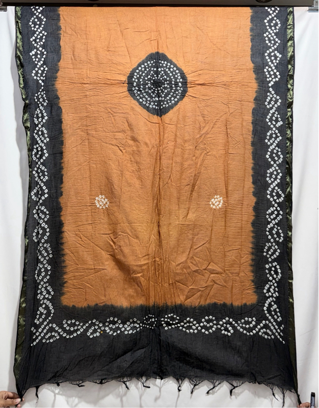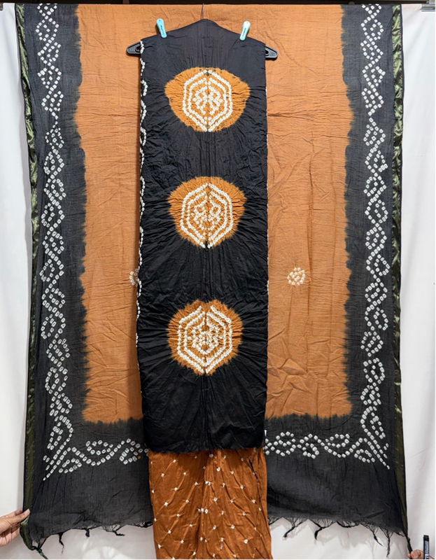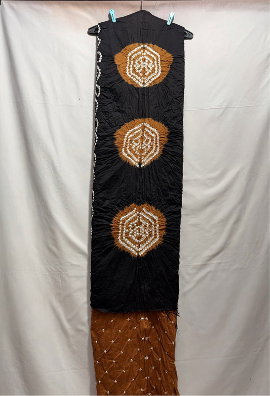 Kala Sanskruti Rust & Black Color Heavy Cotton Satin Bandhani Dress 2.5 M (Each Piece) Elegant Traditional Wear Dress Material for Women