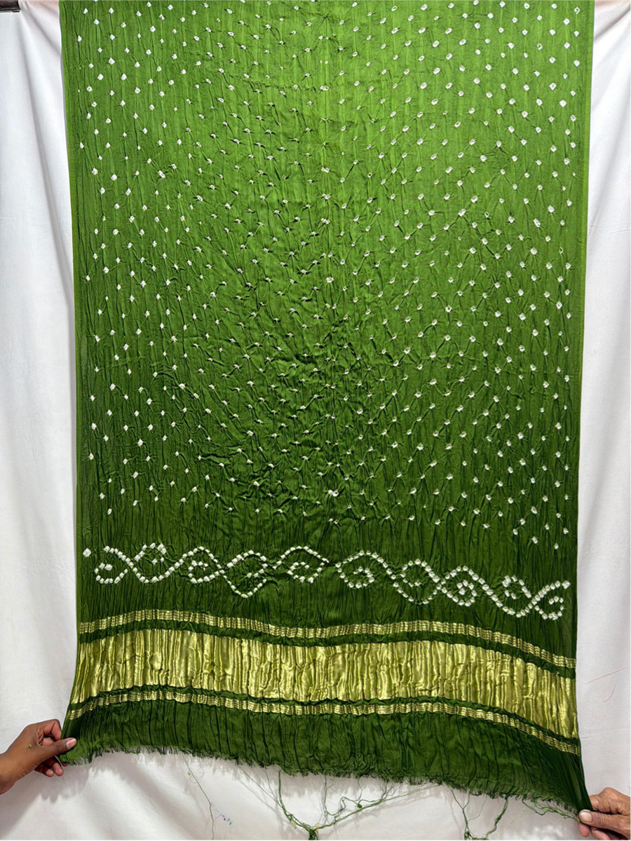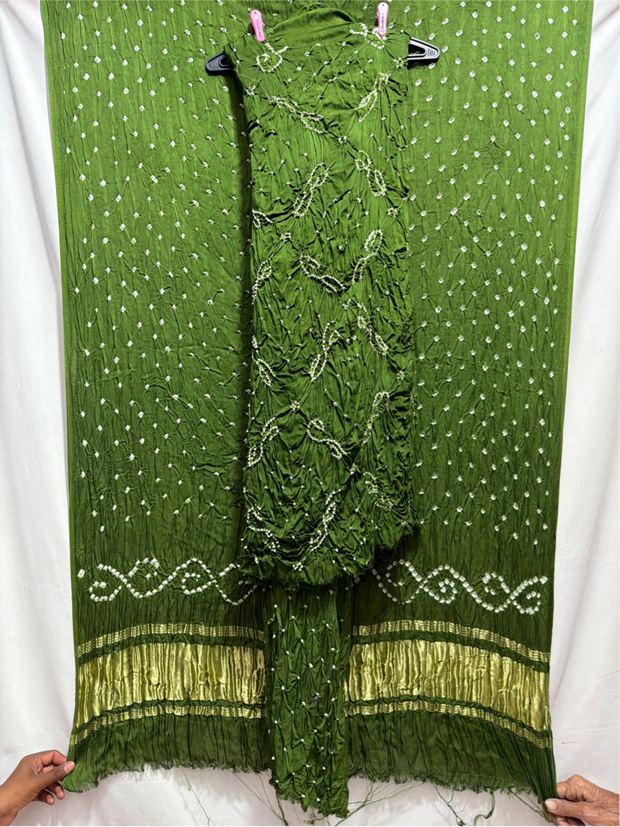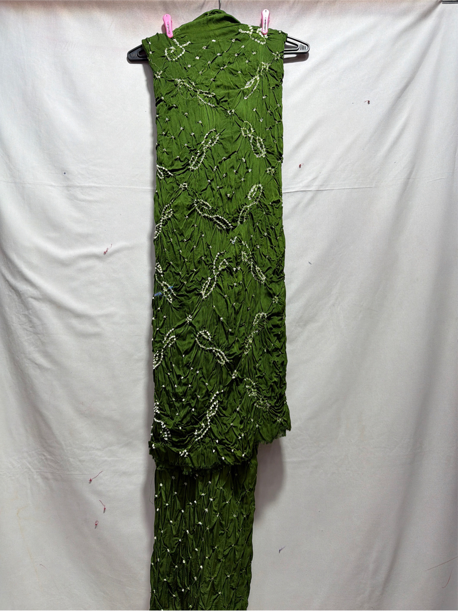 Kala Sanskruti All Over Mehndi Color Art Silk Bandhani Dress 2.5 M Each Piece Elegant Traditional Wear Art Silk Dress for Women