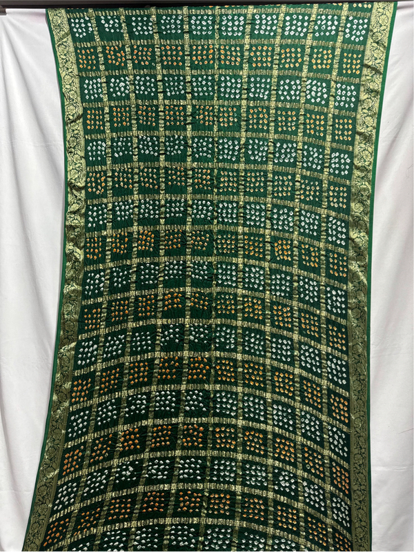 • Design & Shade: All Over Green base enhanced with Hand Made Bandhani, a true example of cultural craftsmanship.