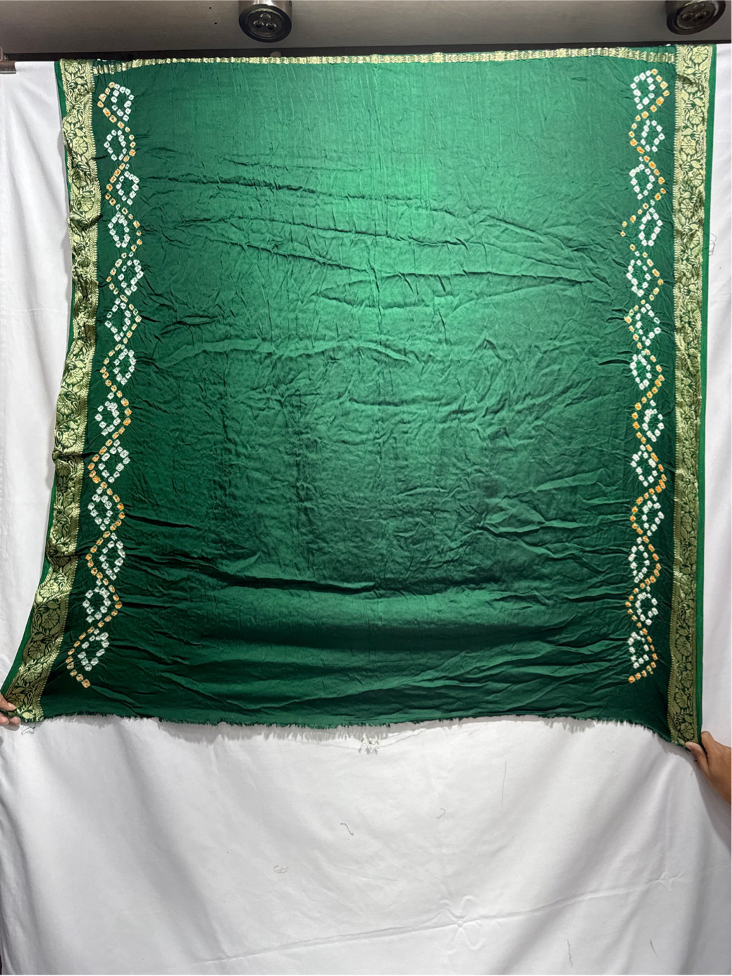 - Design & Shade: All Over Green base enhanced with Hand Made Bandhani, a true example of cultural craftsmanship.