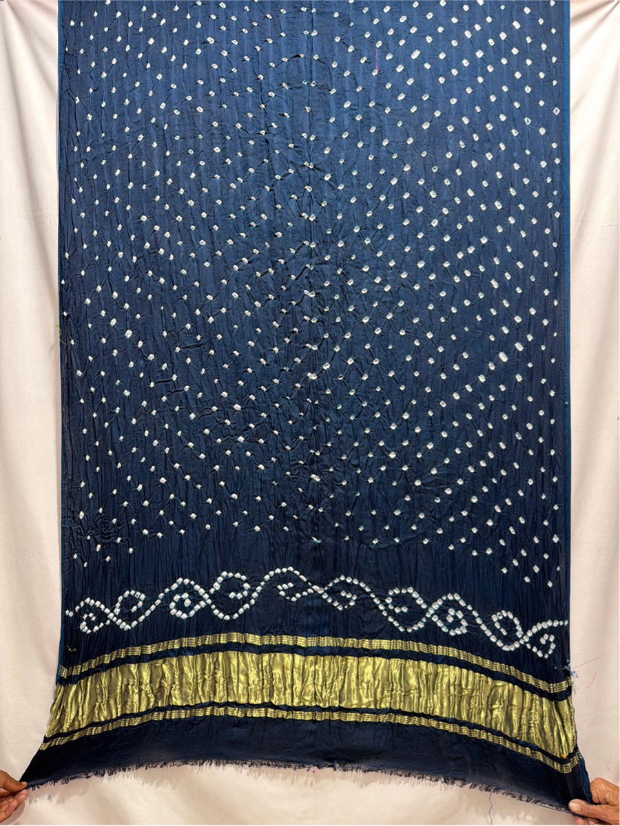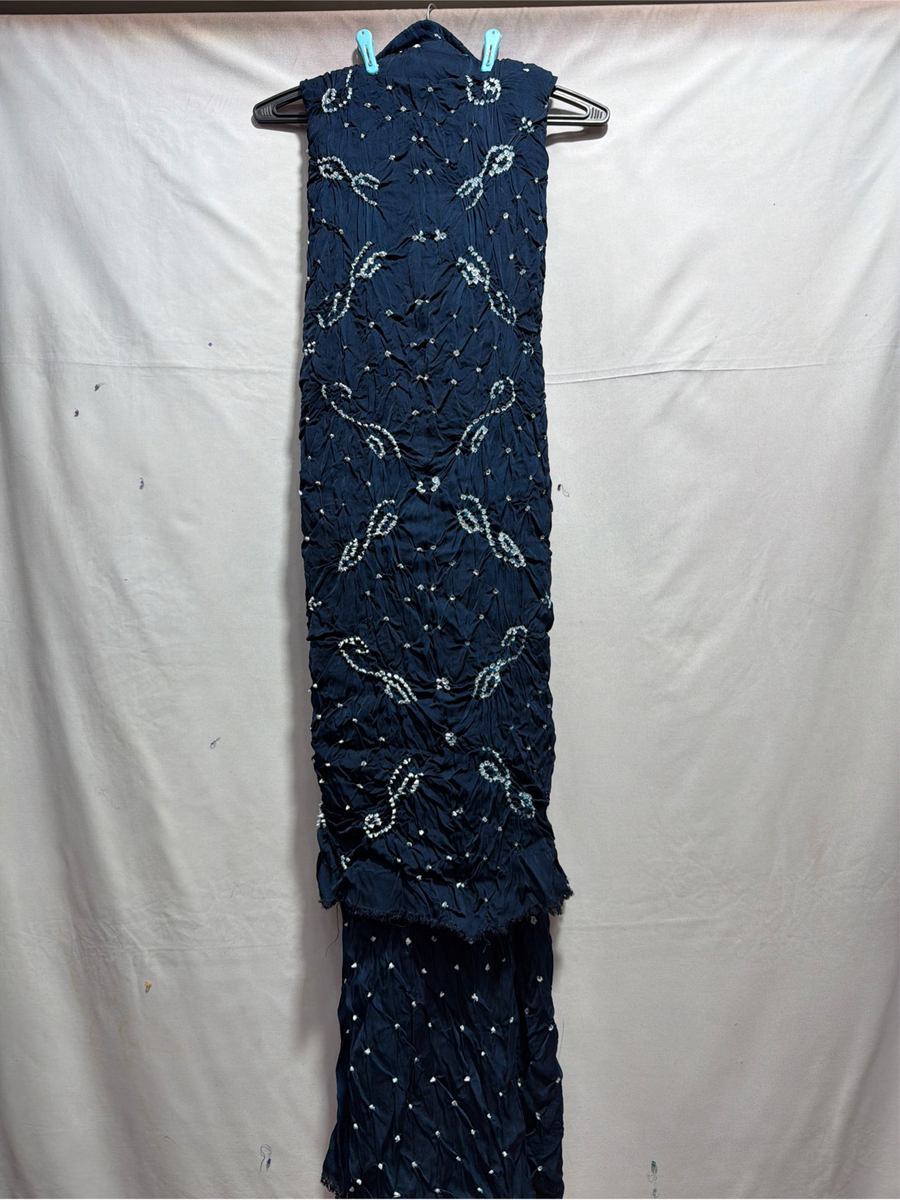 Kala Sanskruti All Over Indigo Color Art Silk Bandhani Dress 2.5 M Each Piece Elegant Traditional Wear Art Silk Dress for Women