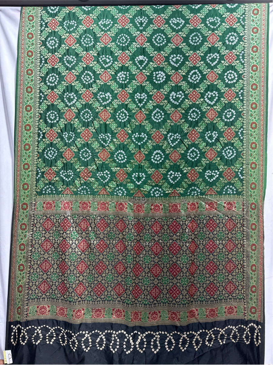 - Design & Shade: Green & Black base enhanced with Hand Made Bandhani, a true example of cultural craftsmanship.