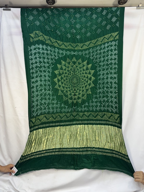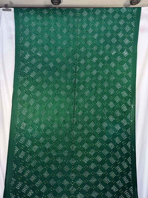 - Color & Work: A all over green saree adorned with intricate Hand Made Bandhani, designed to make it stand out on festive and wedding occasions.
