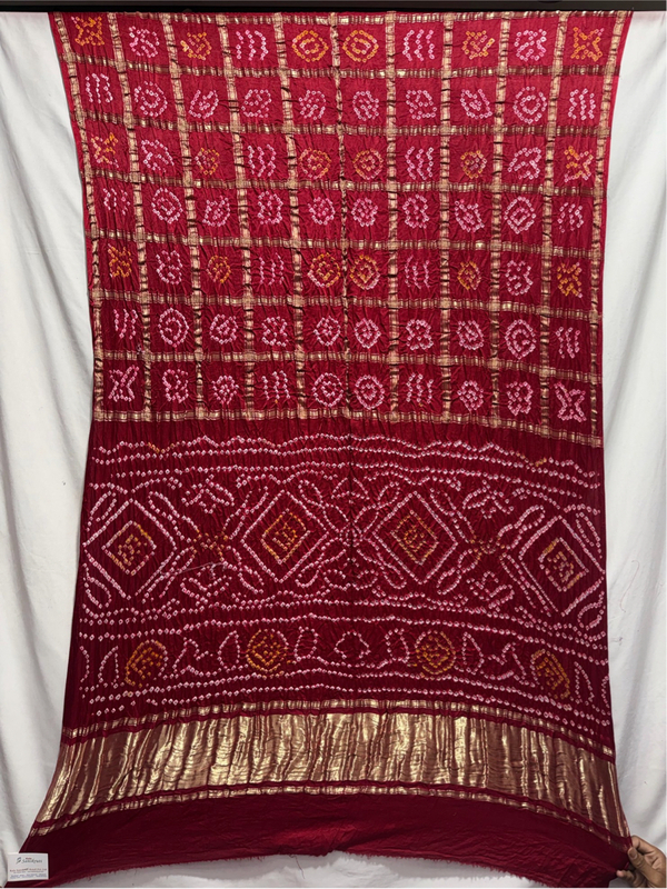 • Color Story: Striking All Over Red complemented with Hand Made Bandhani Gharchola.