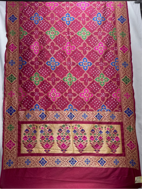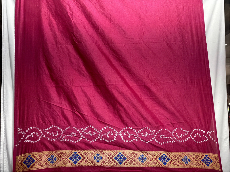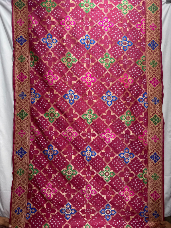- Color Story: Striking All Over Maroon complemented with Hand Made Bandhani.