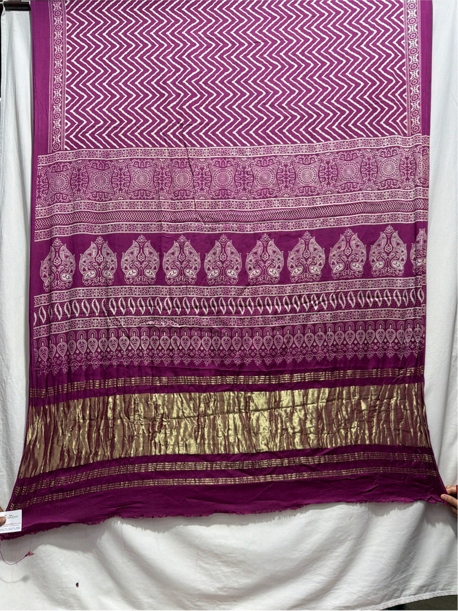 Kala Sanskruti All Over Dark Magenta Color Art Silk Ajarakh Print Saree 6.5M with Blouse Piece Elegant Traditional Wear Bridal Unique Printed Saree for Women
