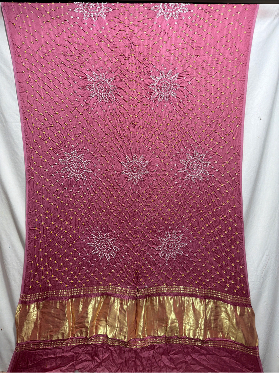Kala Sanskruti All Over Gajri Color Art Silk Bandhani Dress 2.5 M Each Piece Elegant Traditional Wear Art Silk Dress for Women