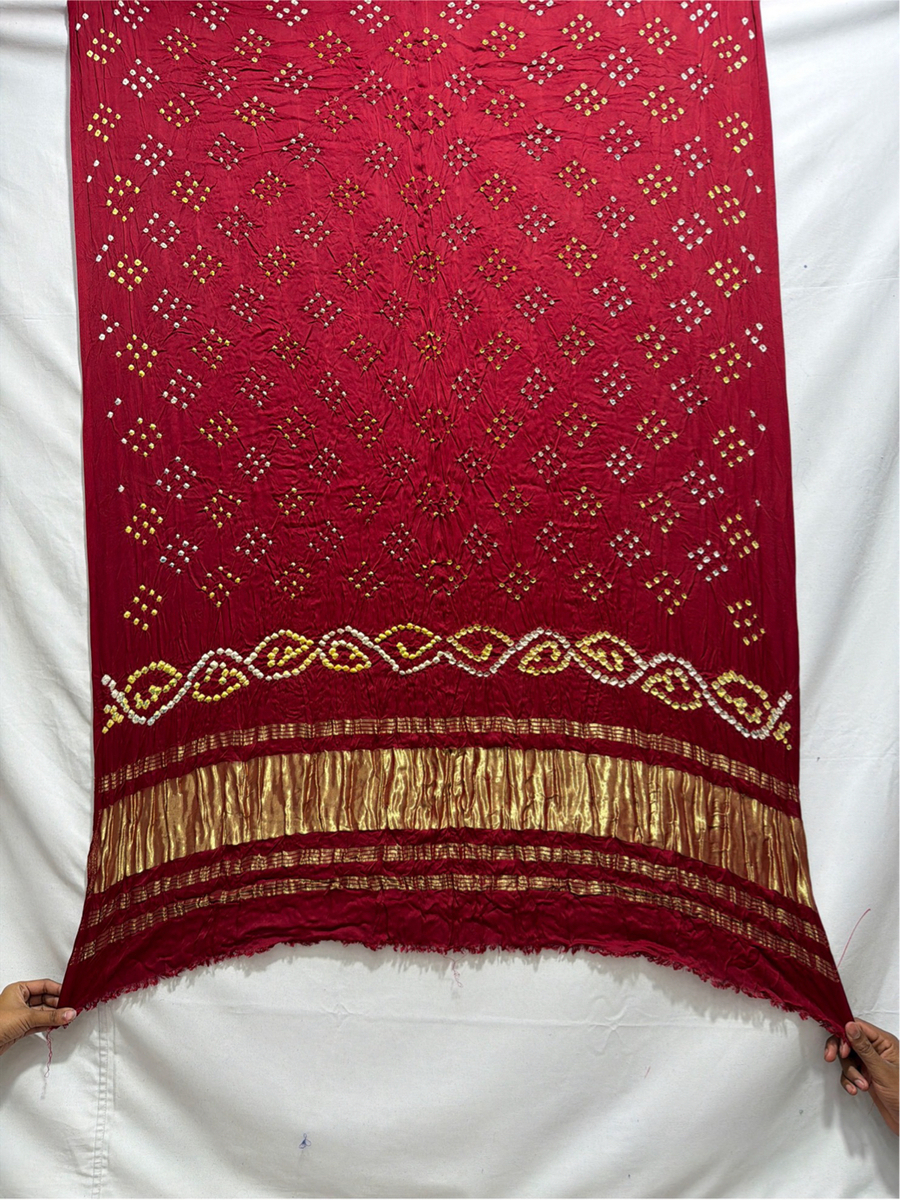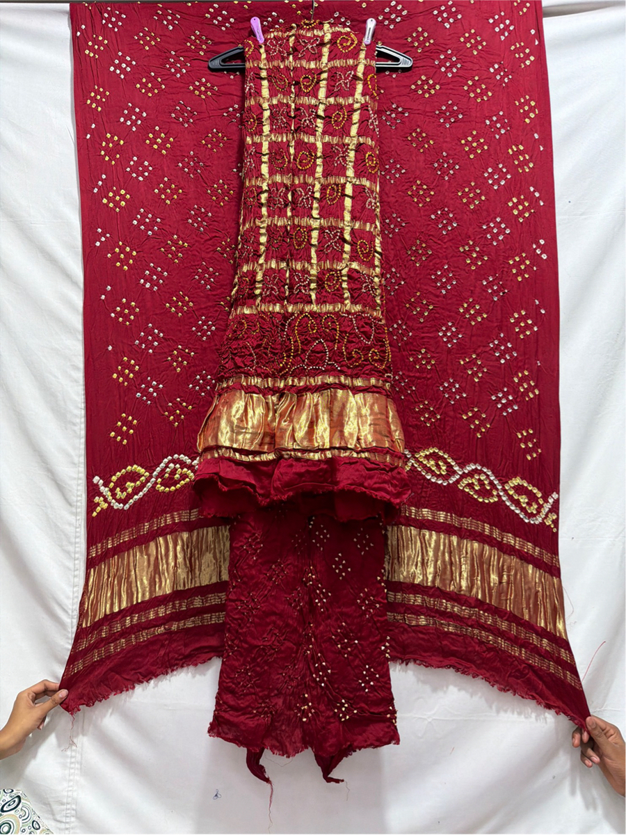 Kala Sanskruti All Over Maroon Color Art Silk Bandhani Dress 2.5 M Each Piece Elegant Traditional Wear Art Silk Dress for Women