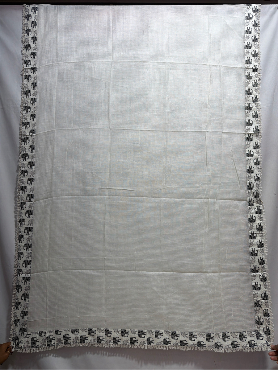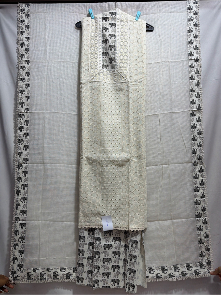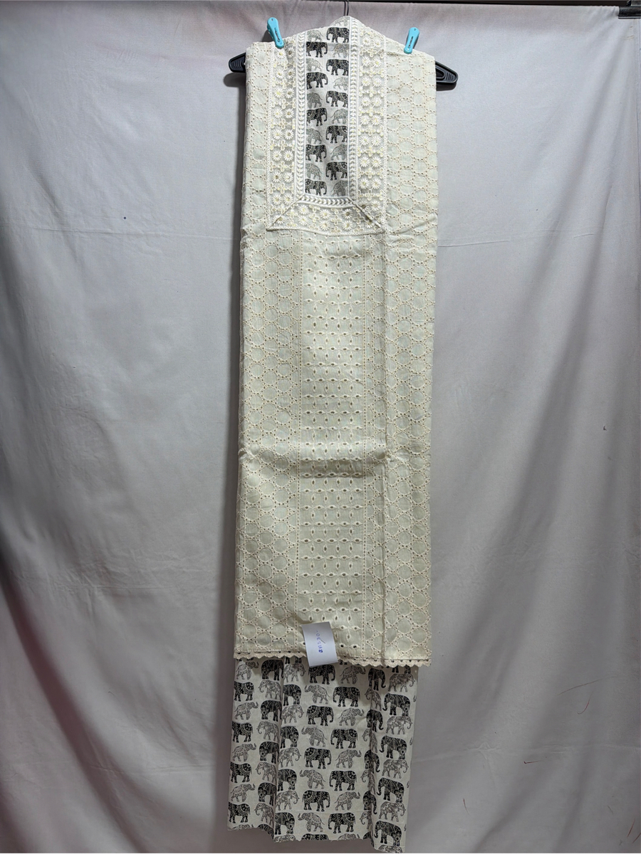 Kala Sanskruti White & Black Color Heavy Cotton Satin Printed Dress With Work 2.5 M (Each Piece) Elegant Traditional Wear Dress Material for Women
