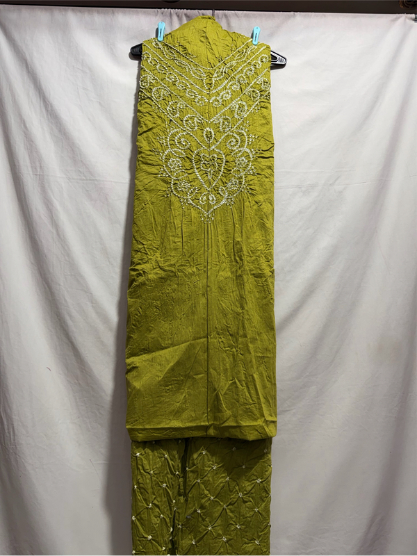 Kala Sanskruti All Over Mehndi Color Heavy Cotton Satin Bandhani Dress 2.5 M (Each Piece) Elegant Traditional Wear Dress Material for Women