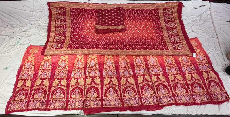 Kala Sanskruti Peach & Pink Colour Dupion Silk Bandhani Chaniyacholi 3.75M - Elegant Traditional Wear Dupion Chaniyacholi's for Women