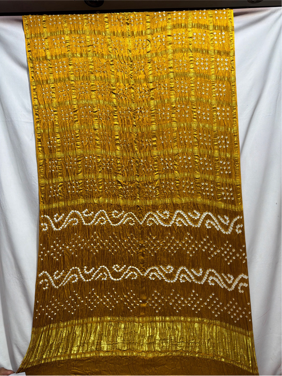 Kala Sanskruti All Over Golden Colour Art Silk Bandhani Saree 6.5M with Blouse Piece Elegant Traditional Wear Bridal Unique Saree for Women