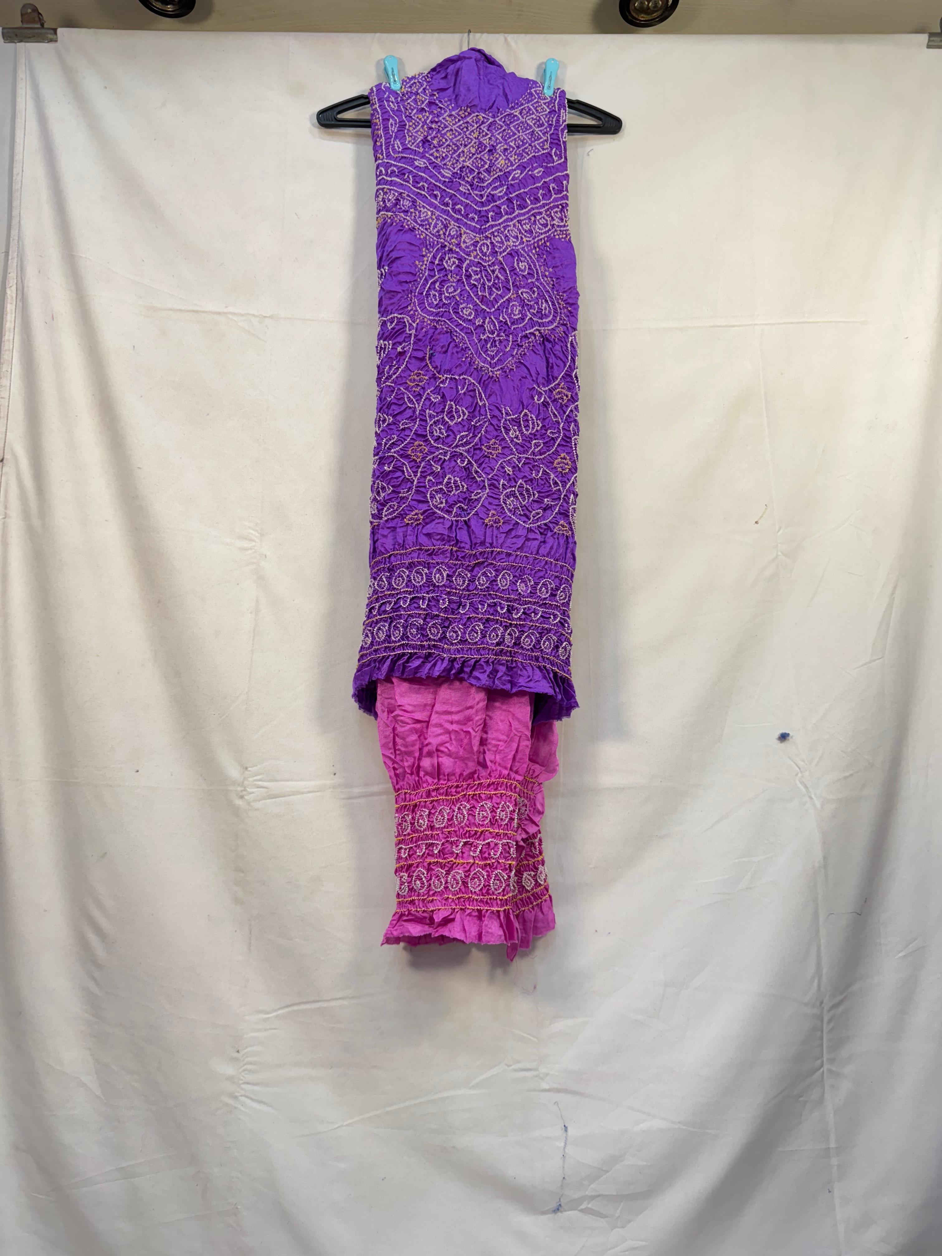 - Color & Work: Pink & Lavender design embellished with Hand Made Bandhani, highlighting artisanal craftsmanship.