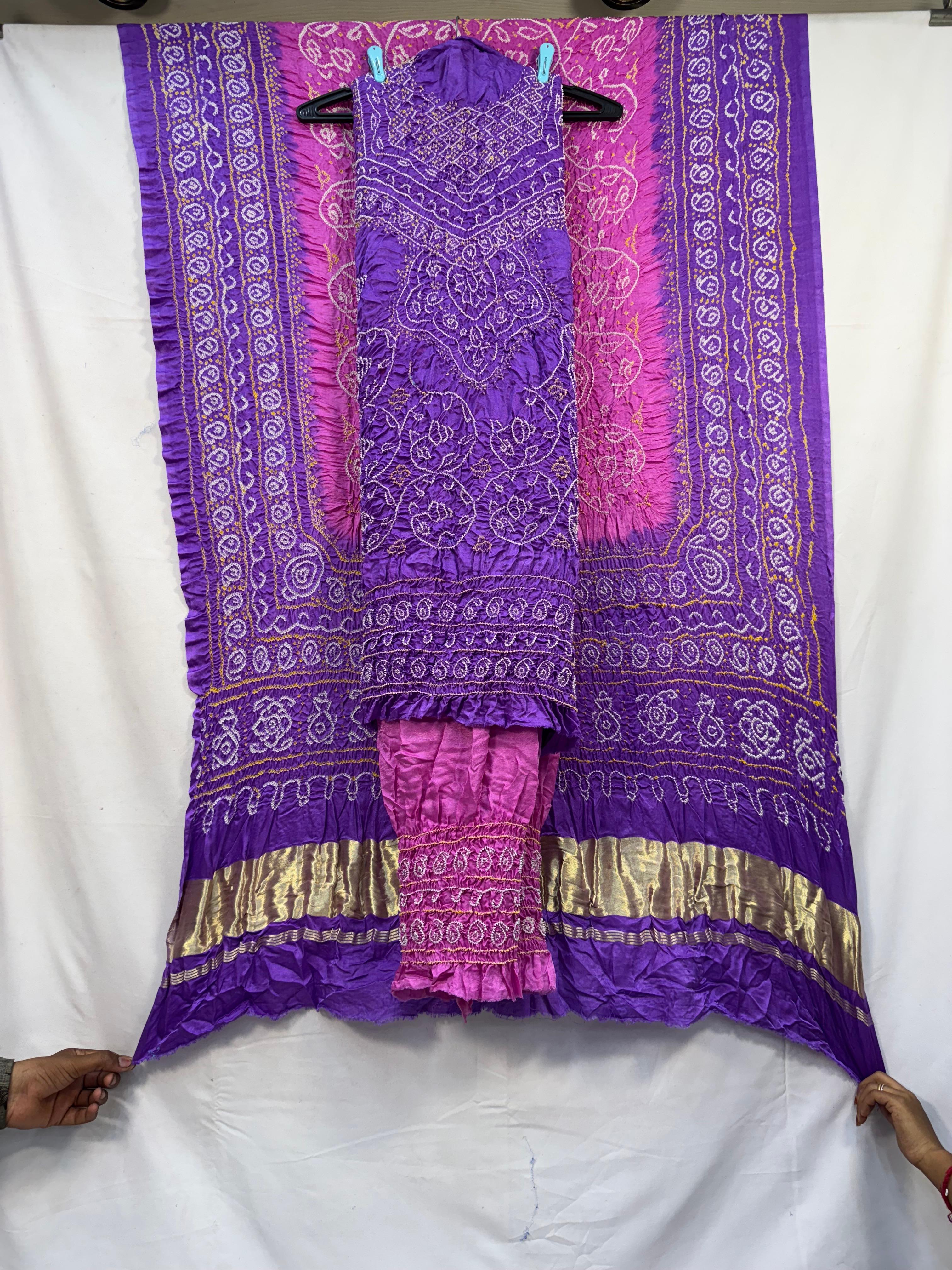 - Material: Crafted from premium Pure Gaji Silk with exquisite Hand Made Bandhani, offering a refined traditional look.