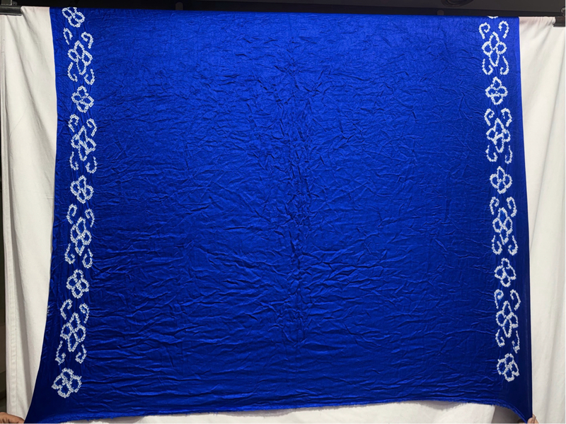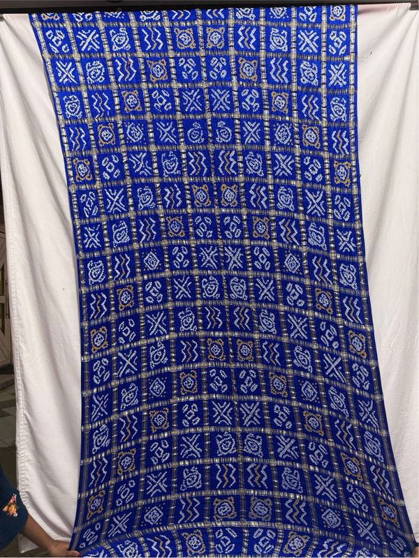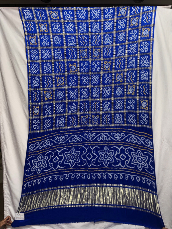 - Color Story: Striking All Over Blue complemented with Hand Made Bandhani Gharchola.