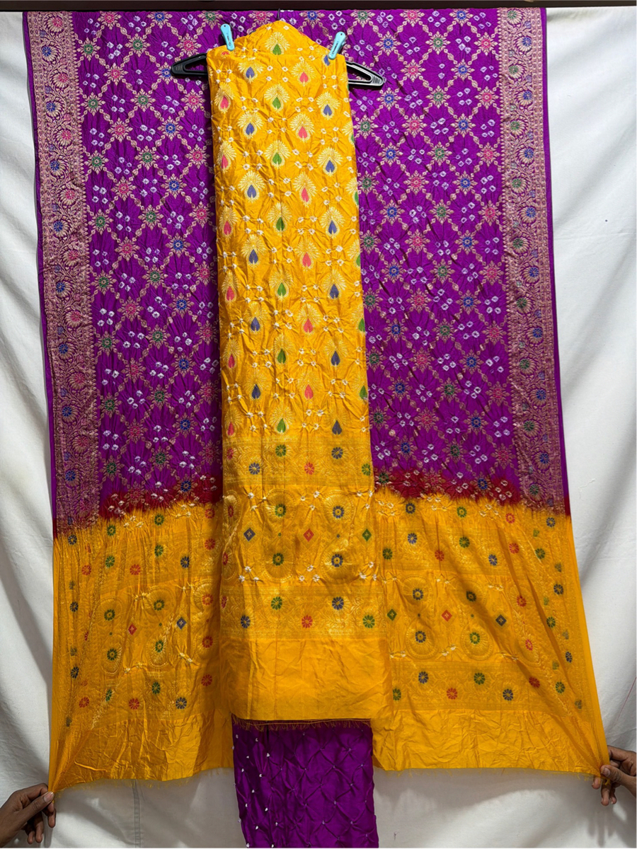 Kala Sanskruti Golden & Magenta Color Dupion Silk Bandhani Dress 2.5 M (Each Piece) Elegant Traditional Wear Dress for Women