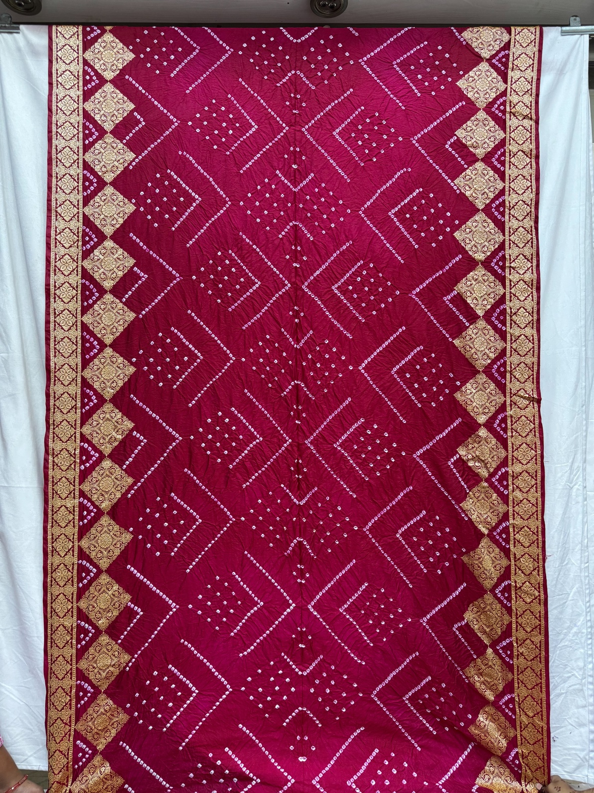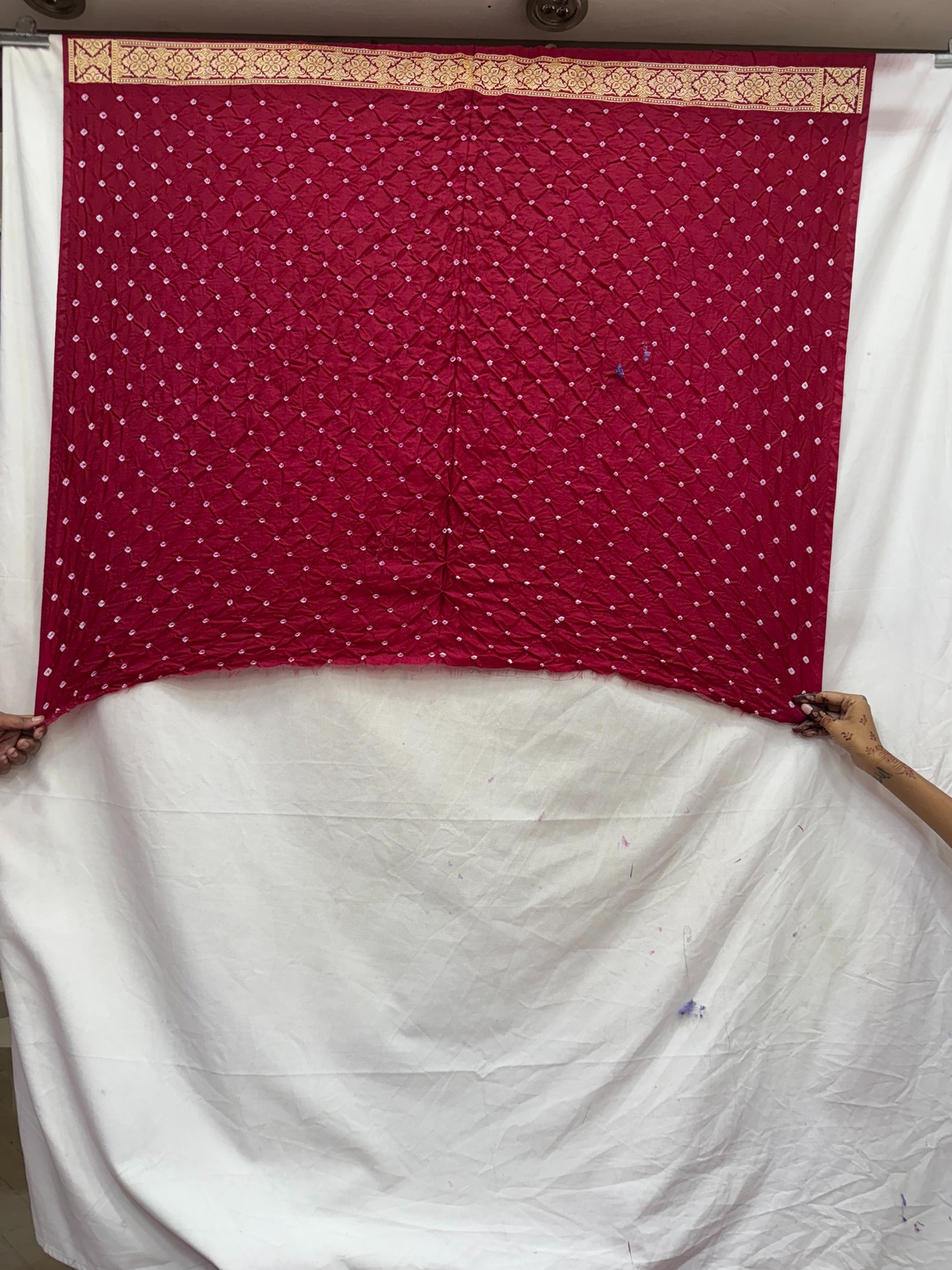 - Color Story: Striking All Over Maroon complemented with Hand Made Bandhani.