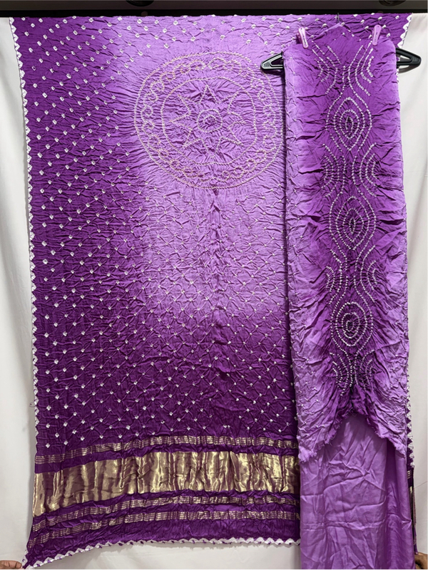 Kala Sanskruti Light Dark Lavender Color Art Silk Bandhani Dress 2.5 M Each Piece Elegant Traditional Wear Art Silk Dress for Women