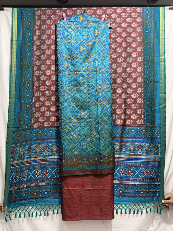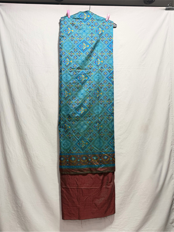 Kala Sanskruti Rama & Maroon Color Art Silk Patola Dress 2.5 M Each Piece Elegant Traditional Wear Art Silk Dress for Women