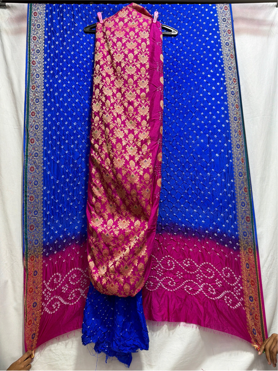 Kala Sanskruti Pink Blue Color Dupion Silk Bandhani Dress 2.5 M (Each Piece) Elegant Traditional Wear Dress for Women