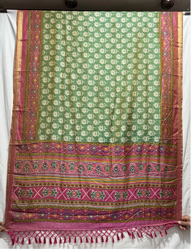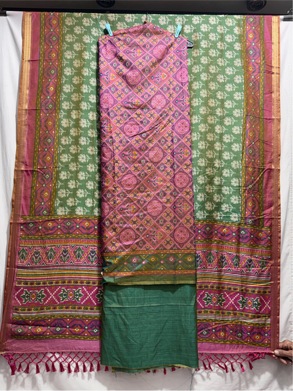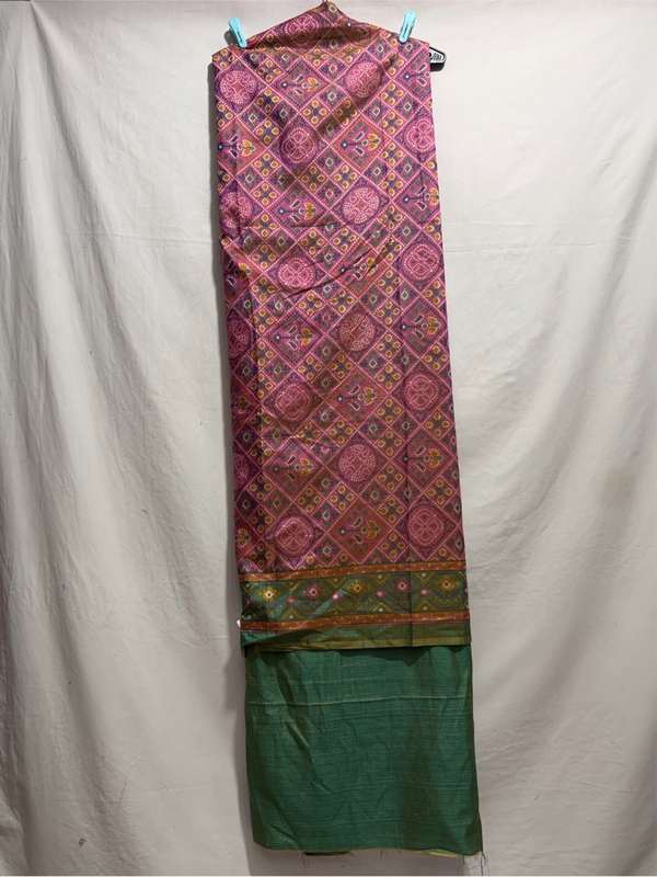 Kala Sanskruti Pink & Pista Color Art Silk Patola Dress 2.5 M Each Piece Elegant Traditional Wear Art Silk Dress for Women