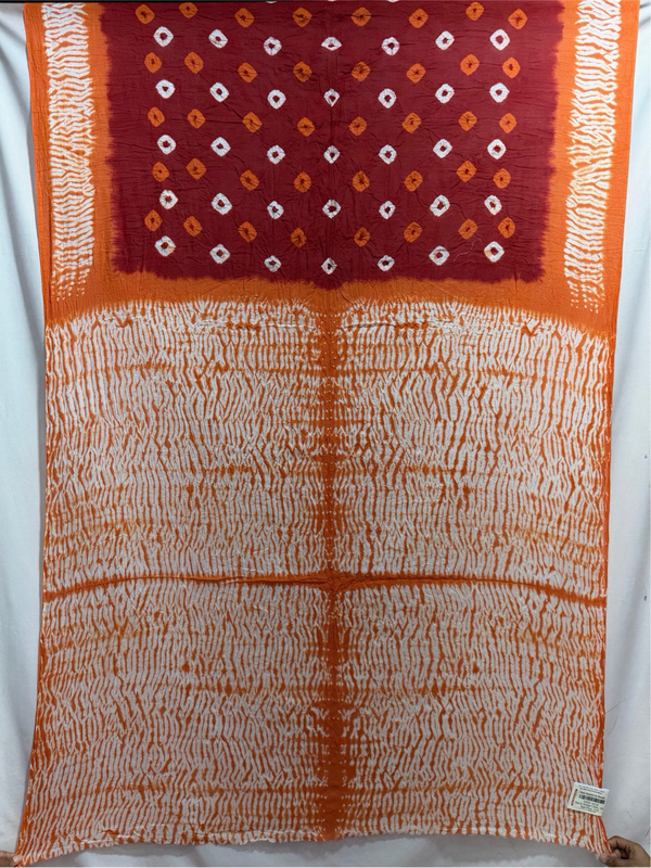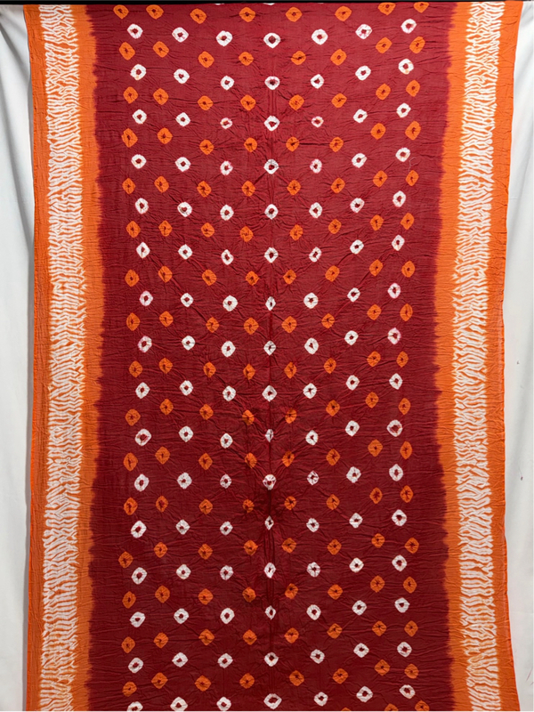 Kala Sanskruti Red & Orange Color Cotton Bandhani Saree With Sibori 6.5M with Blouse Piece Elegant Traditional Wear Saree for Women