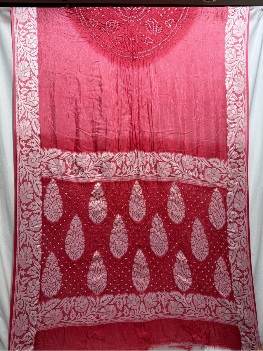 Kala Sanskruti Light Dark Peach Color Art Silk Bandhani Saree 6.5M with Blouse Piece Elegant Traditional Wear Bridal Unique Saree for Women