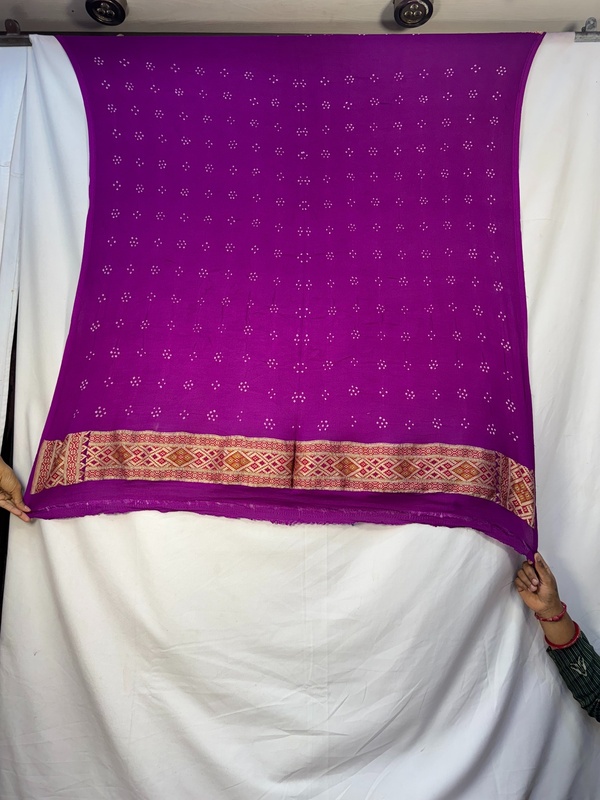 - Work: Traditional Bandhani motifs spread all over, adding richness and cultural artistry.