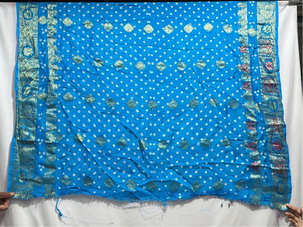 Kala Sanskruti All Over Sky Blue Color Semi Gaji Bandhani Saree With Hand Work 6.5M Elegant Traditional Wear Graceful Handcrafted Artistry For Woman