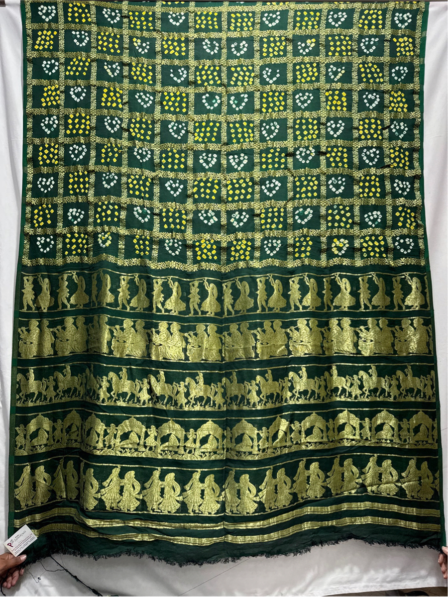 - Design: All Over Dark Green — Hand Made Bandhani motifs across the body.