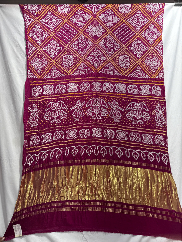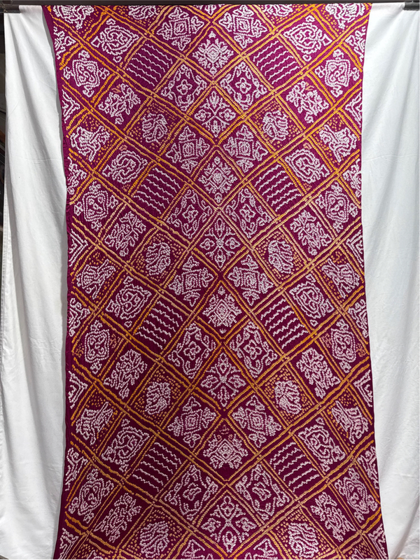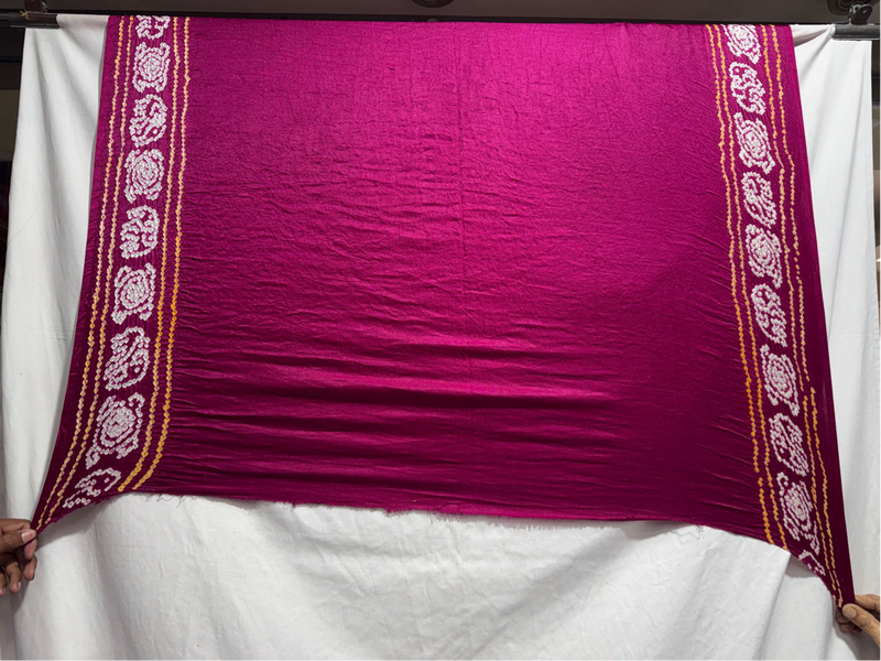 • Color & Work: A all over magenta saree adorned with intricate Hand Made Bandhani, designed to make it stand out on festive and wedding occasions.