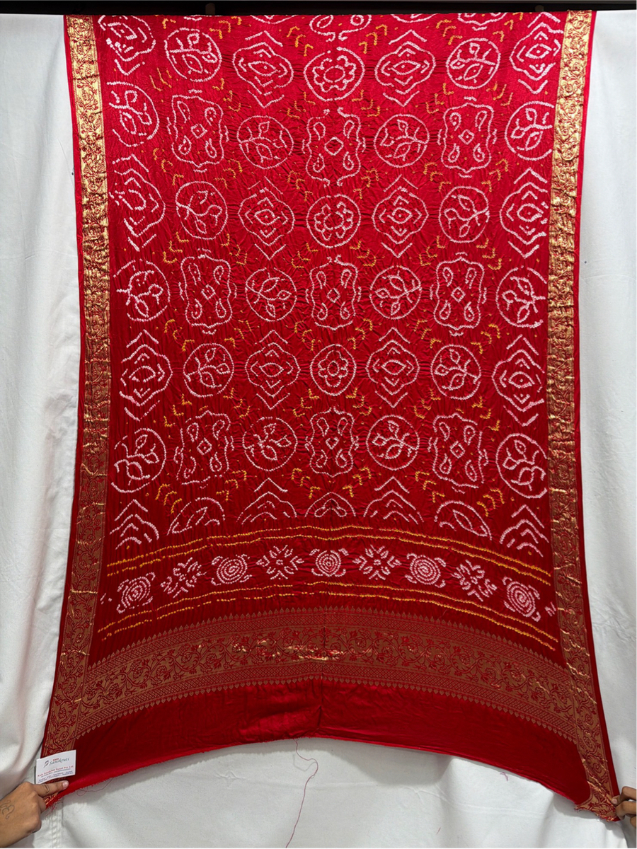 Kala Sanskruti All Over Red Color Gaji Silk Bandhani Dupatta 2.5M Elegant Traditional Wear Gaji Dupatta for Women