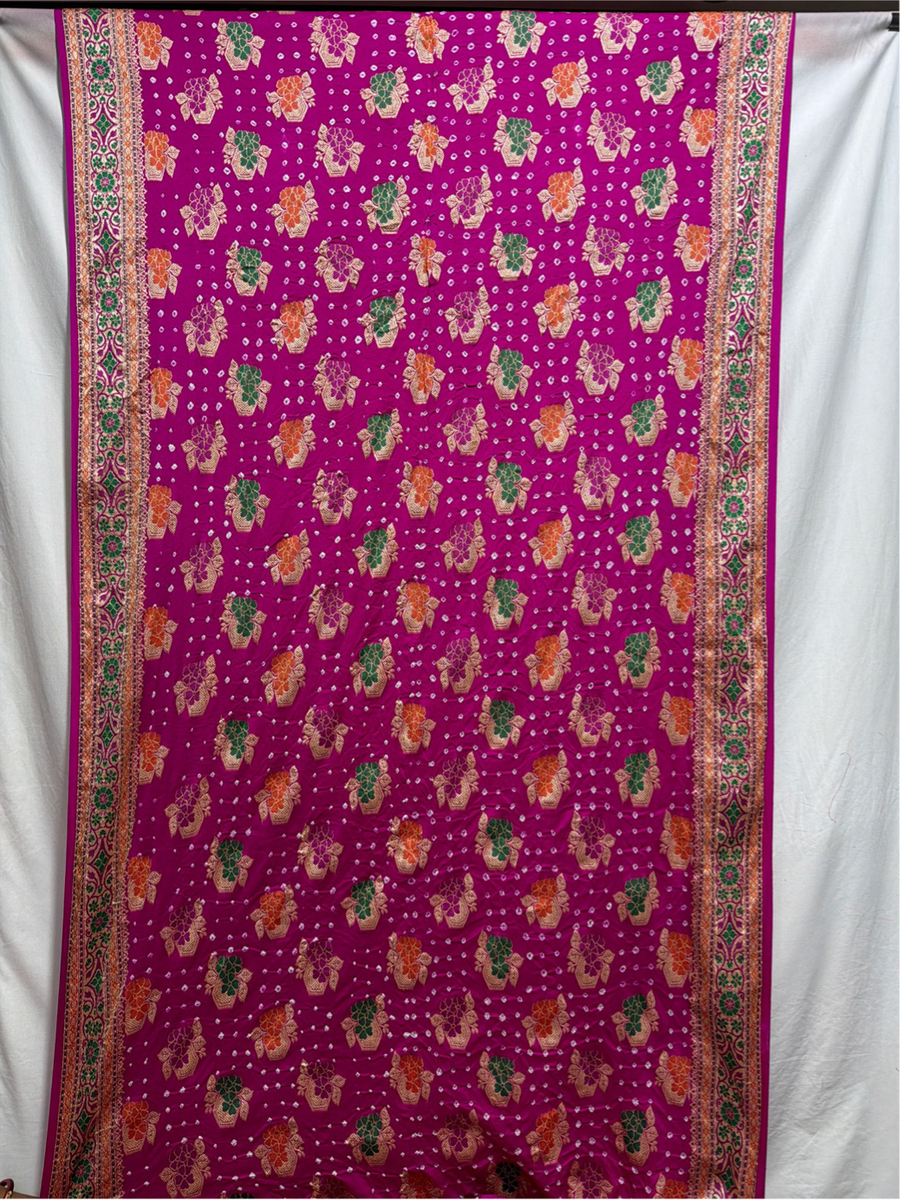 Kala Sanskruti All Over Rani Pink Color Dupion Silk Bandhani Saree 6.5M with Blouse Piece Elegant Traditional Wear Bridal Saree for Women